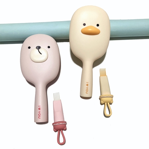Regalo para niños, cepillo de pelo de paleta de pato de oso, cepillo de pelo de plástico de pelo liso encantador rosa, cojín grande, cepillo de pelo de masaje Premium