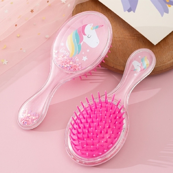 Xách tay trong suốt dễ thương trẻ em phim hoạt hình mô hình Bàn chải tóc với sequin người lớn Massage Da Đầu đầy màu sắc đệm không khí Bàn chải tóc